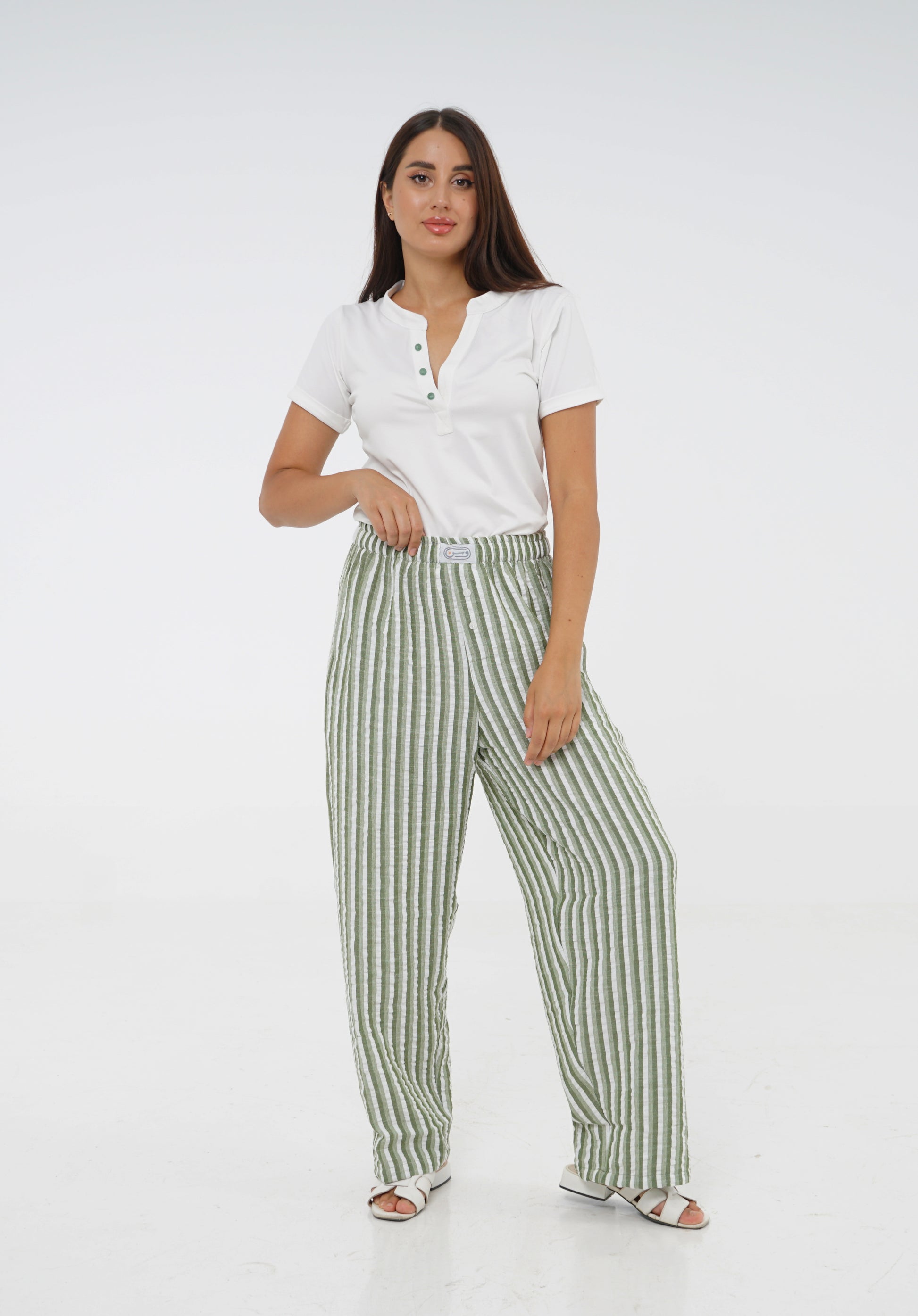 Skid into serenity with our Green Cotton Striped Pants. Made from pure, breathable cotton, these shorts are tailored to move with you, soft on the skin, and brings a comfort and timeless style to your sleepwear collection.